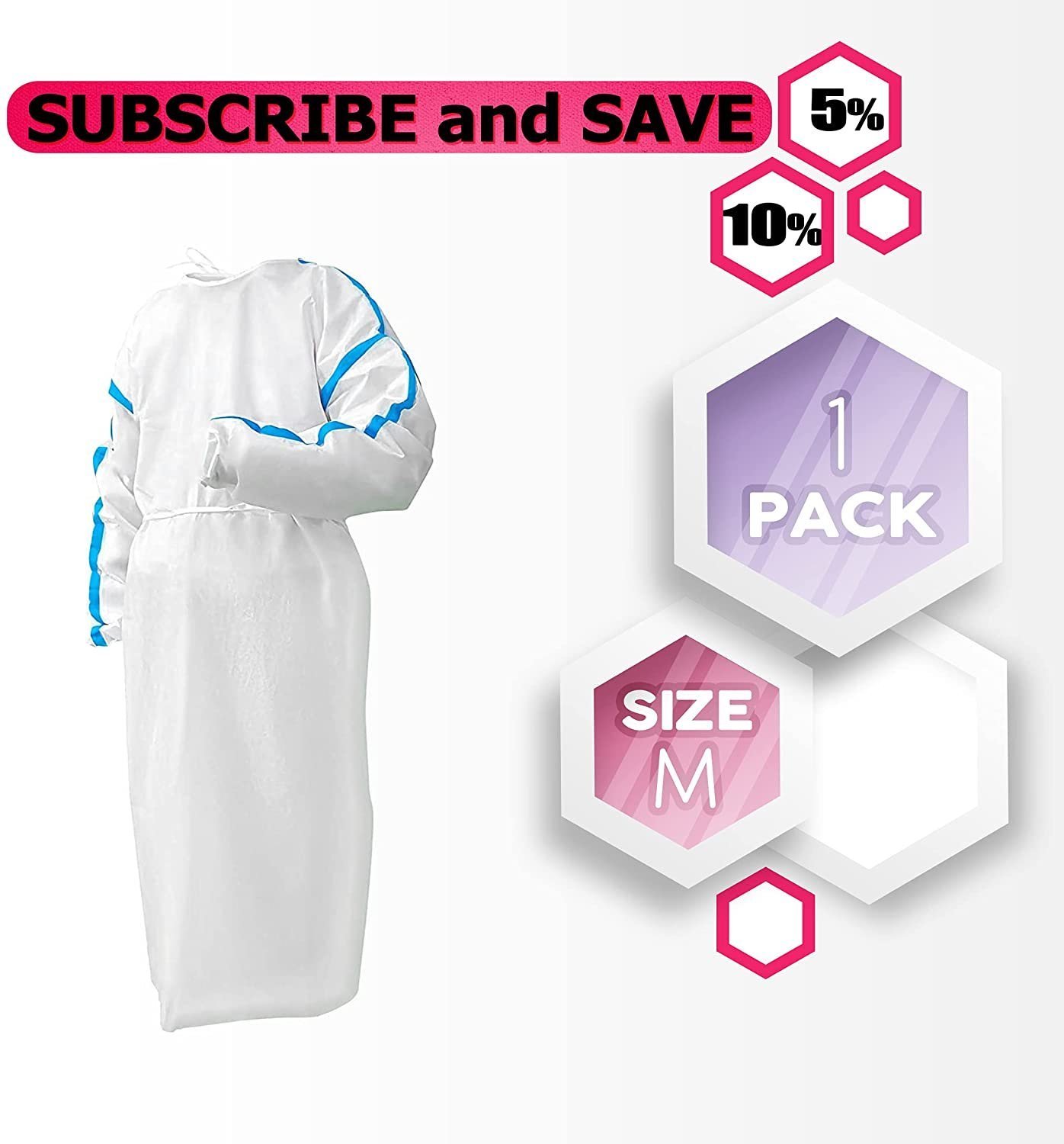 • Each medical ppe gown comes without pockets; knee length and elastic wrists for added convenience and style. Ppe gowns disposable bulk provide cost-efficient. Discard medical gowns disposable frocks into a closed bin and wash your hands properly. Do not try to use them again.