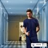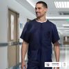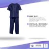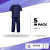 Disposable Scrubs Top and Bottom Large. 55 GSM Polypropylene Shirts and Pants. 5 Sets of Medical Scrub Top and Pants; Dark Blue Pants with Tie; Pocket