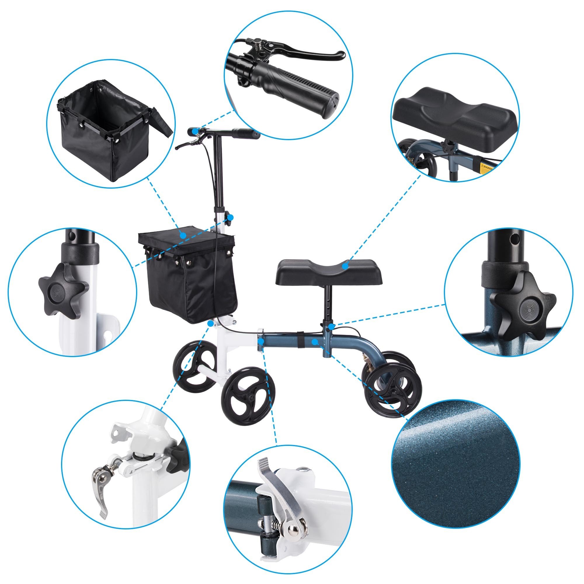 - Multifunctional - This Steerable Knee Walker comes in a special dark blue color and provides a comfortable and convenient alternative to crutches; especially for those who are looking for an effective mobility solution; such as immobile elderly and patients recovering from leg injuries
