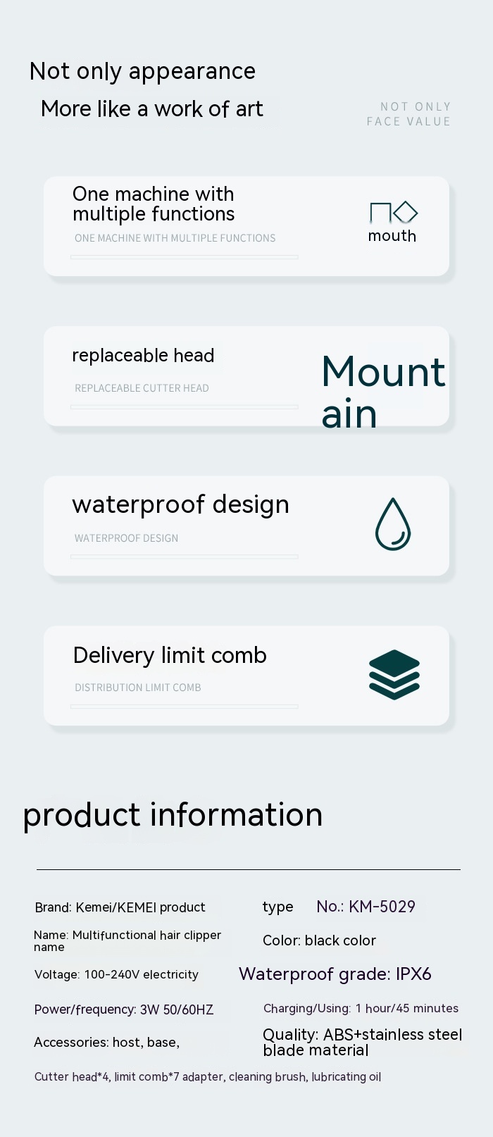 Electric Hair Clipper-5029 Fully Washable Pogonotomy Nose Carving All-in-one Household Haircut Suit