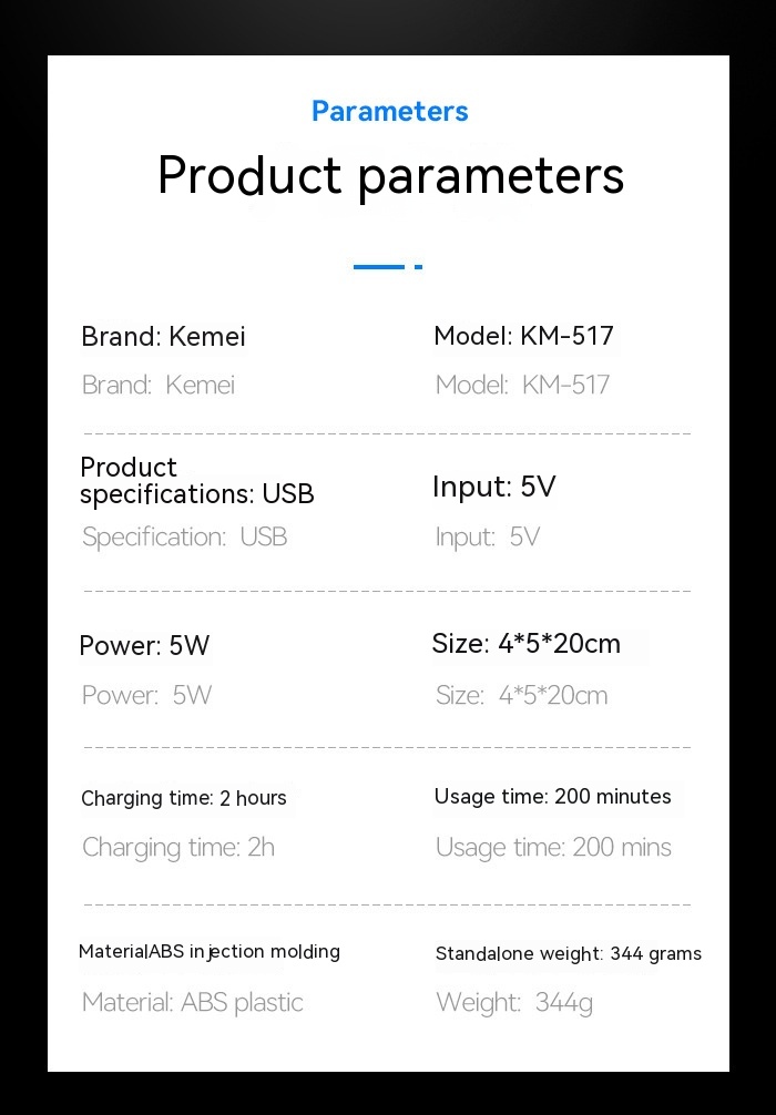 Home > 517USB Charging New All-metal Electric Hair Scissors