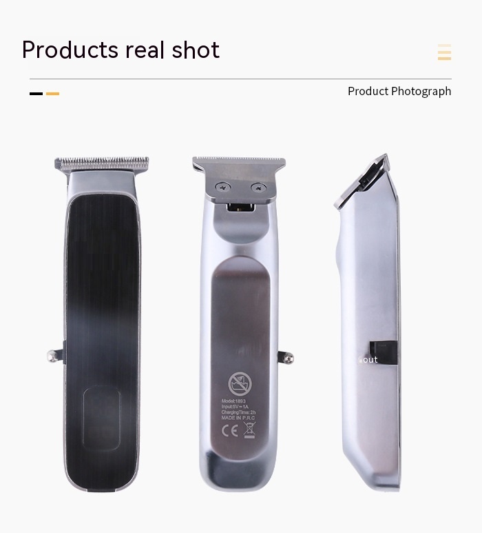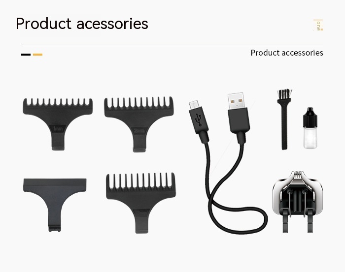 Product accessories: Blade 2 (T-shaped blade, carving cutter), limit comb * 3, cleaning brush, oil bottle, USB cable, instruction manual