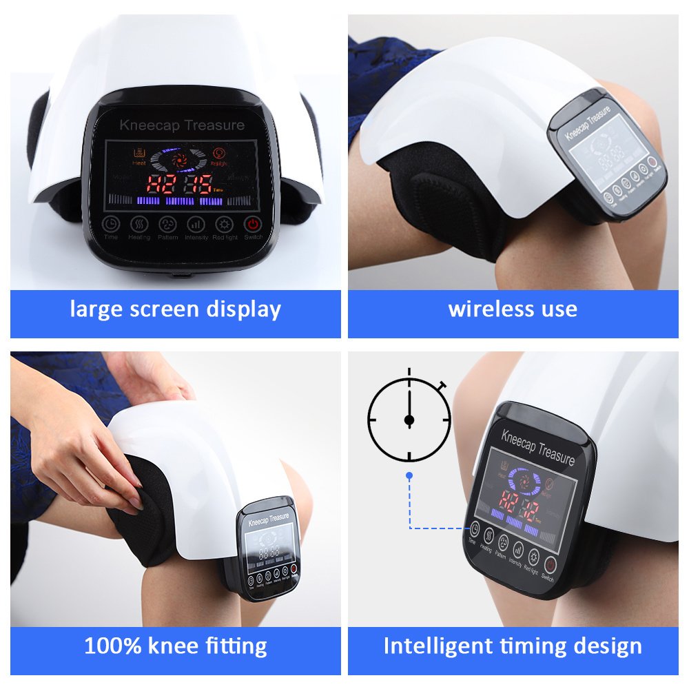 1.Multifunctional knee massager, vibration massage + air bag extrusion + hot compress + red light therapy, multi-faceted care for your knee health.